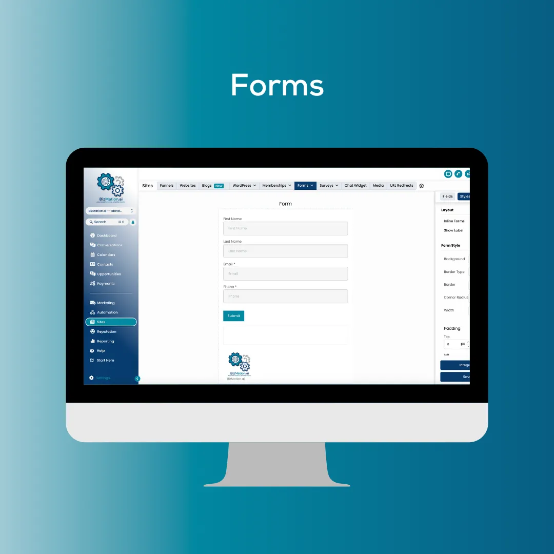 Create unlimited website contact forms, lead generation forms, applications, onboarding forms, intake forms, & more using BizMation.ai to capture qualified leads information to fill your CRM pipeline right inside the same system.